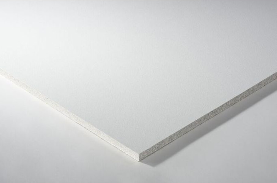 Smooth laminated ceiling tiles with high acoustic absorption for enhanced acoustic comfort.