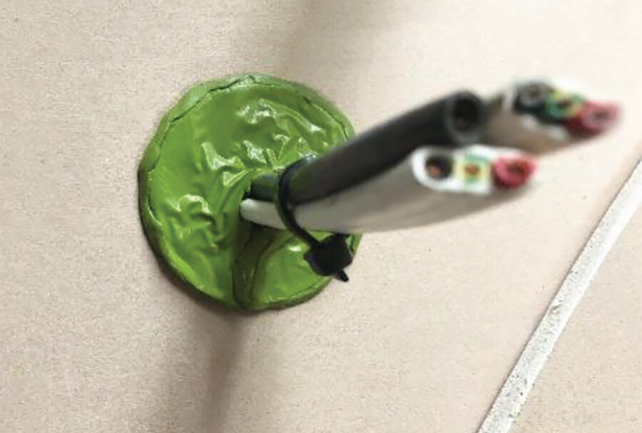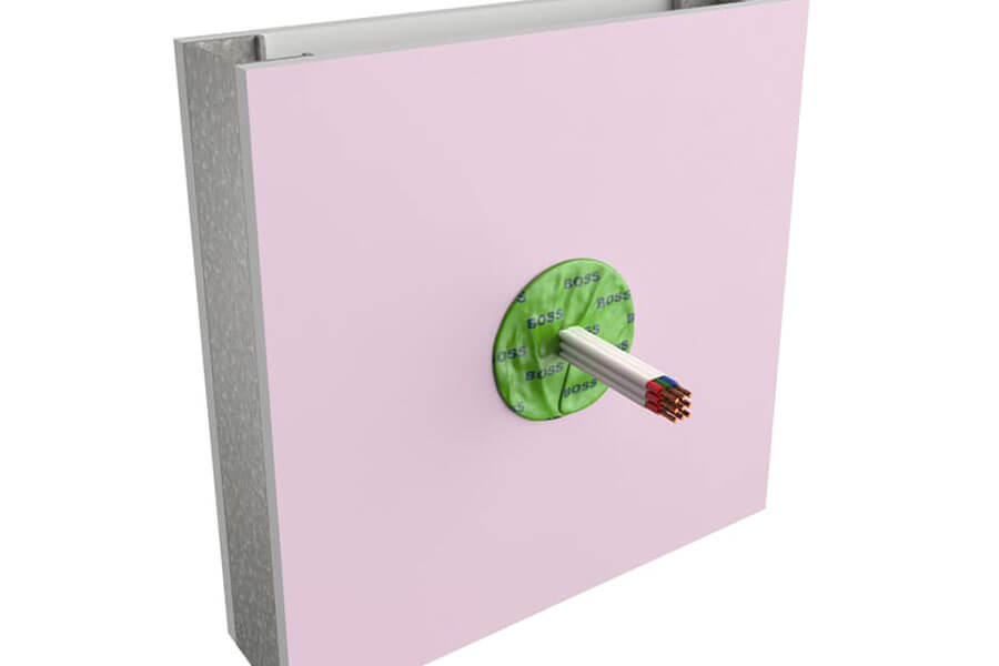 BOSS PenoPatch™ is a low cost, simple method of sealing blank openings, individual cables, small bundles of cables, pipes and conduits in a range of 1hr fire walls. Made with a fire resistant advanced formula putty with a strong bonding capability, the BOSS PenoPatch™ simply presses onto the wall around the service and instantly provides up to a 60 minute fire rating.