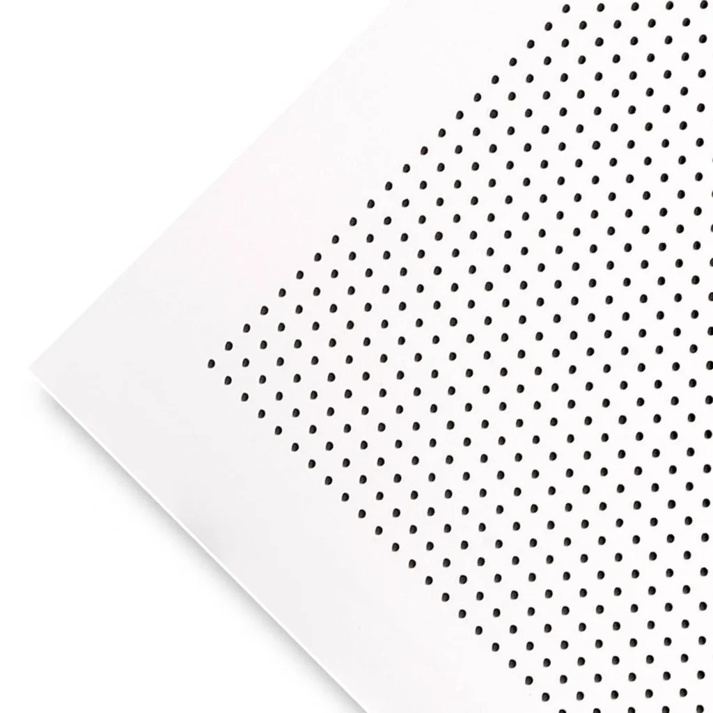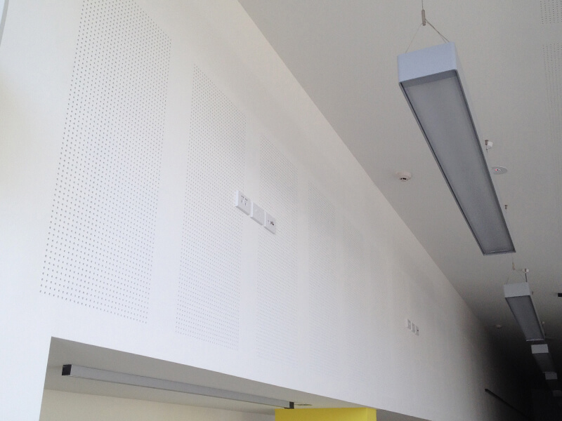 The panel perforations, together with insulation, where used, reduce echo and noise reverberation to create more comfortable environments for work and leisure.
