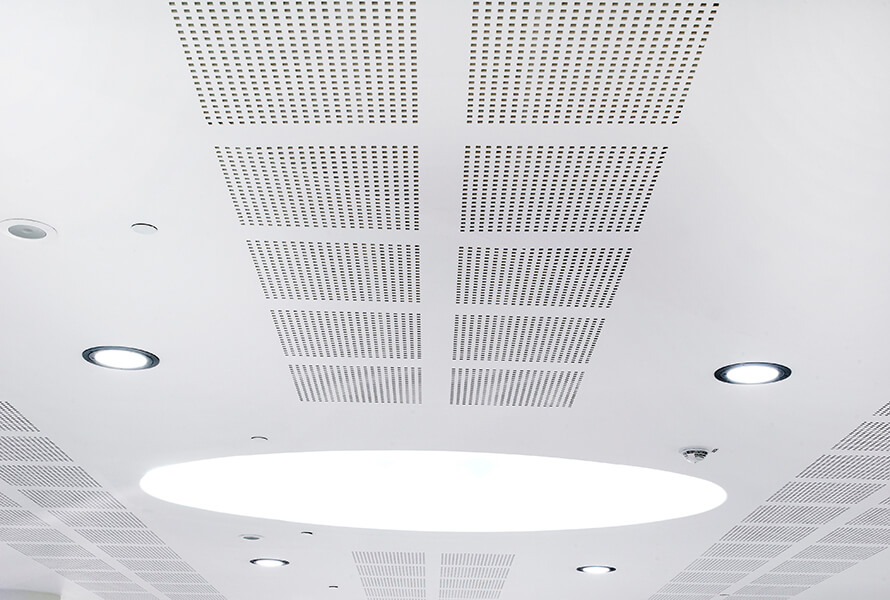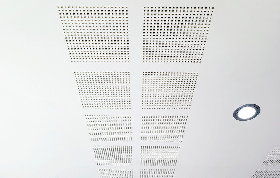 To ensure a seamless look Protone Access Panels blend almost imperceptibly into the ceiling with a perforation pattern that matches each of the Protone boards.