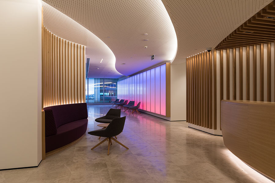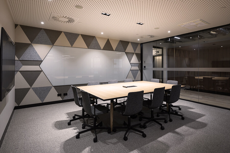 Manufactured by worldwide plasterboard specialist, Saint-Gobain, Rigitone is purpose built to provide exceptional acoustic control with ultimate design freedom. High levels of acoustic absorption are achieved through a combination of perforation patterns and a highly effective white acoustic fabric backing which also prevents dust from the ceiling entering the room and masks the ceiling framework.