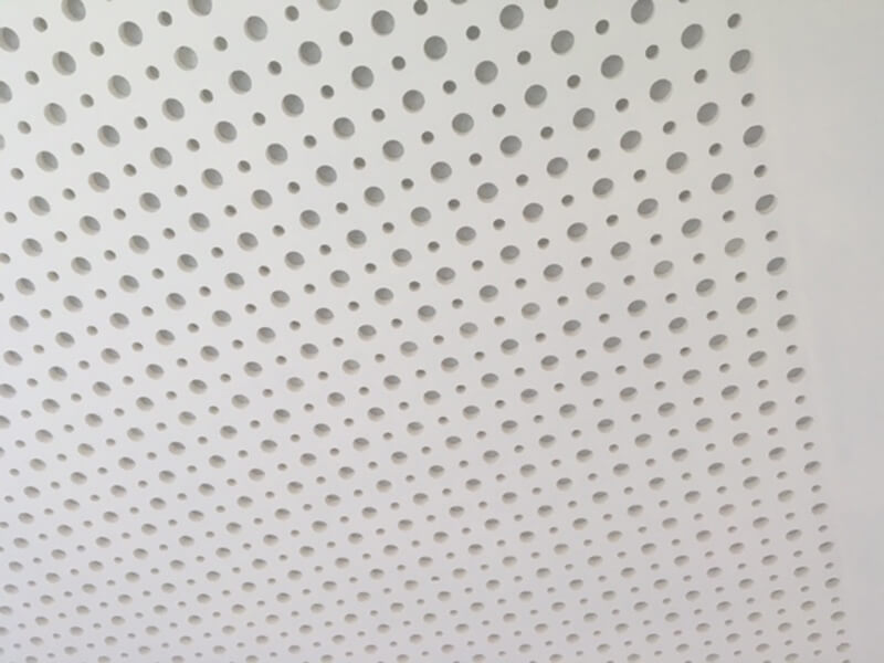 Rigitone perforated plasterboard is typically used as a high performance plasterboard for ceilings in commercial constructions where a high level of acoustic performance is required. This includes applications such as theatres, restaurants, shopping centres and hotel foyers.