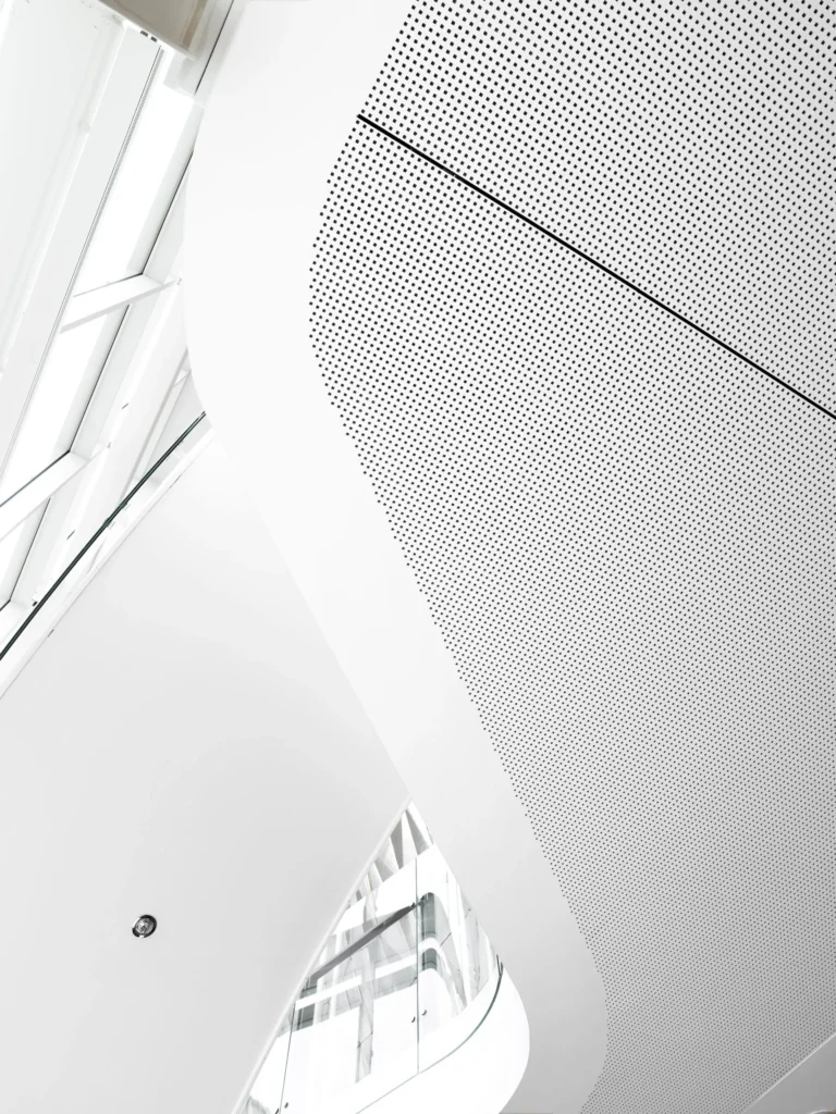 With a 23% open area Rigitone Matrix 12mm Square combines exceptional acoustic performance with modern monolithic design thanks to it’s edge-to-edge perforation layout and unique installation method.