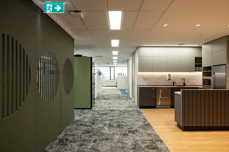 The perforations provide excellent sound absorption while the fleece offers a smooth, elegant surface finish.